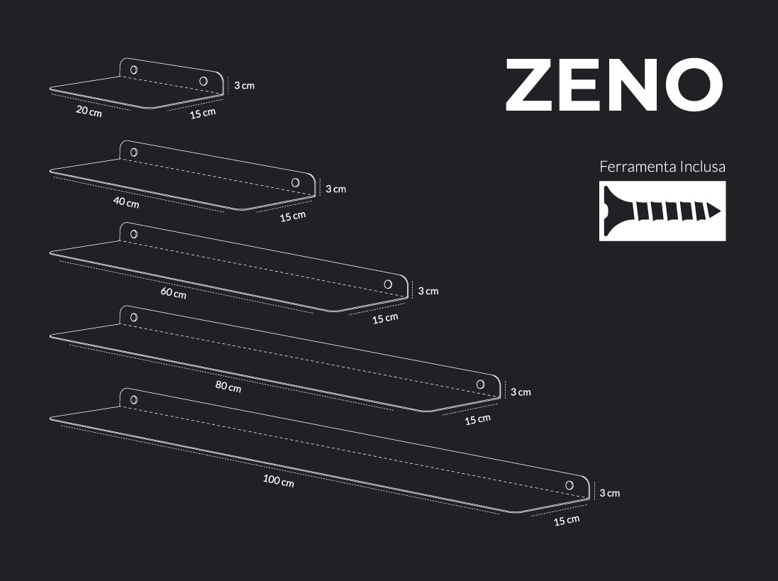 Versatile e raffinata, la mensola Zeno si adatta a ogni esigenza: perfetta come portaoggetti, per esporre libri o mettere in mostra i tuoi accessori preferiti con stile e ordine.